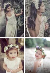 Een Bohemian bruiloft is intiem en romantisch. Deze vier je in een bos, een boerderij, een schuur, op het strand of in een landelijke omgeving. Voor een bruidegom is het geschikt om wijde broeken met bretels en een vlinderdas te dragen. Een blouse met een gilet kan ook. Als accessoires een zakhorloge, hoed of een pet. En dan de bruid. Qua kapsel draagt de bruid haar haren los, een bloemenkrans in het haar of een vlecht. De jurk is eenvoudig en heeft niet teveel tierelantijntjes. De jurk hoeft niet wit te zijn en vaak is er ook kant in verwerkt. Een veldboeket erbij en je bent helemaal in de Bohemian wedding look.