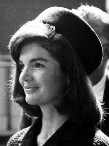 Jacqueline Lee Bouvier werd geboren op 28 juli 1929. Ze is wereldwijd bekend onder de namen Jackie Kennedy, Jackie Onassis en Jackie O. Ze was intelligent en belezen en had een geweldige stijl voor mode. De stijl was klassiek en werd gekenmerkt door een pillendoos hoedje*, oversized zonnebril, witte handschoenen en een Carré sjaal van het merk Hermès. Dit is een vierkant zijden sjaaltje van 90 bij 90 cm. Door haar werd dit sjaaltje een stijlklassieker. Zwart en wit combinaties wist ze als geen ander te combineren. Maar het gold dan wel dat wit voor de onderstukken gedragen werd en zwart voor de bovenstukken. Ze droeg vaak effen pastelkleuren.